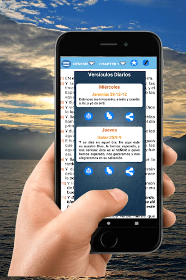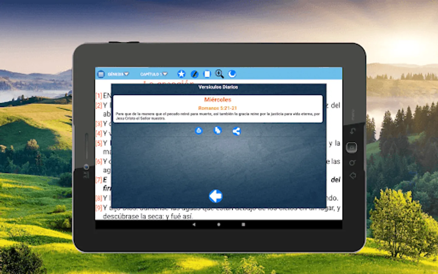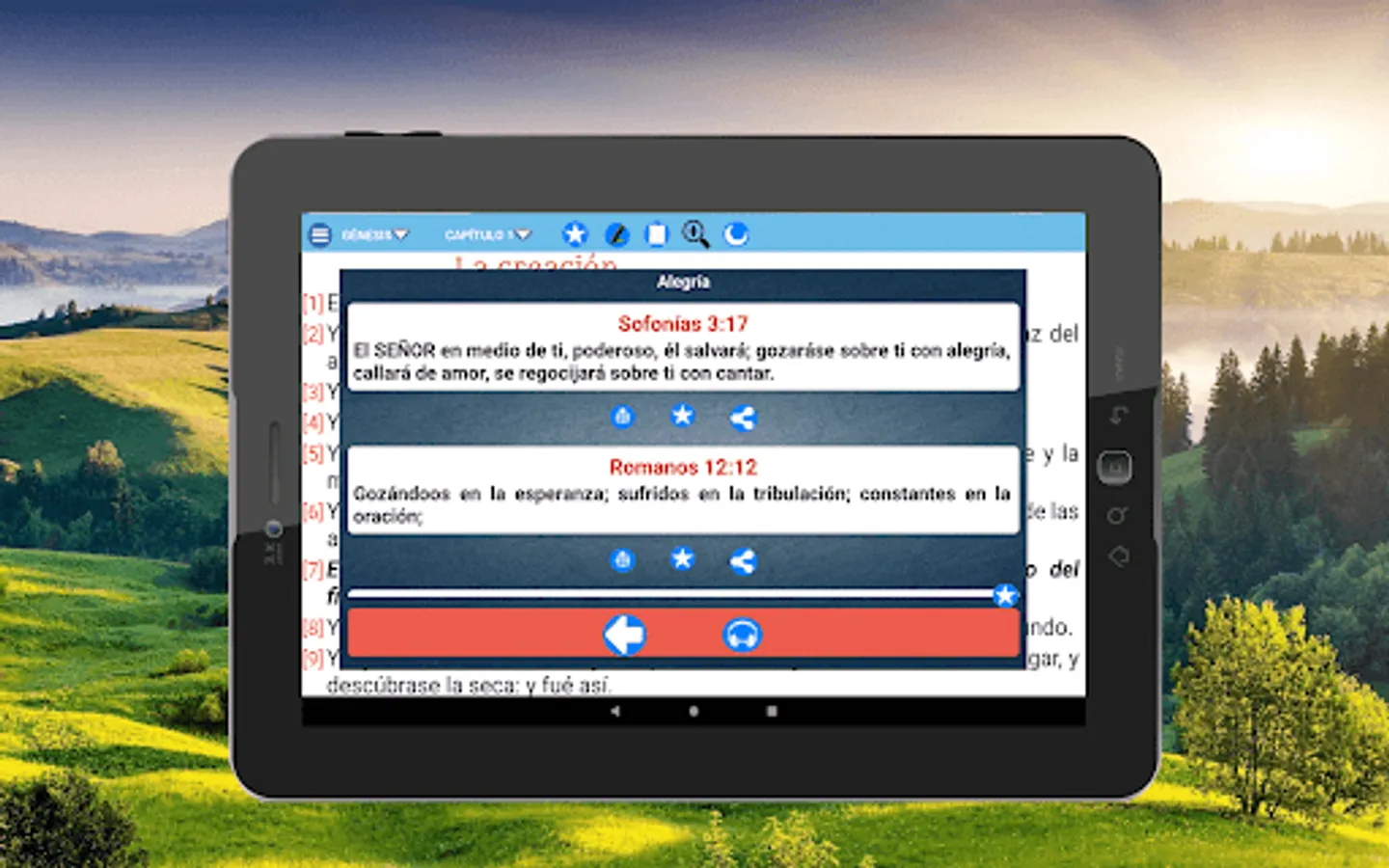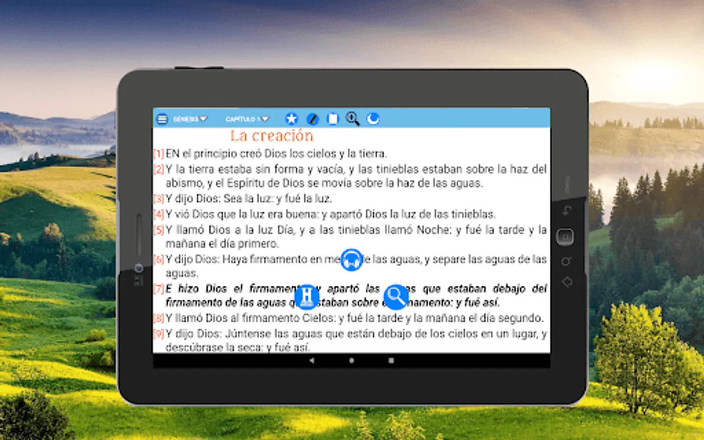 Syntactic order - This revision respects the syntactic order of Spanish so that its reading is more fluid and natural. Application features The application is easy to use and allows you to listen and read the holy scriptures quickly and comfortably, without the need for an internet connection. You can pause the playback of the chapter and listen to it where you left off again and choose the verse where you want to start reading. Access to the options menu quickly and easily.