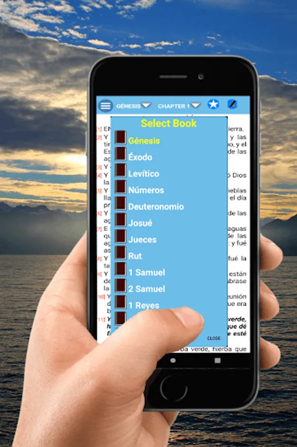 You can click on the screen and the lower part that appears on the name of the book and the chapter, by pressing it the list of books appears and on the other the chapters that the selected book has.
