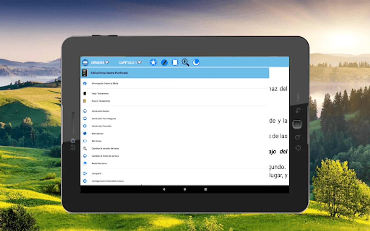 Access to the options menu quickly and easily. Option to change the text size. Book reading background change. Access to favorite chapters and verses. Search for words in books, chapters and verses. Night mode to facilitate reading and reduce screen light.