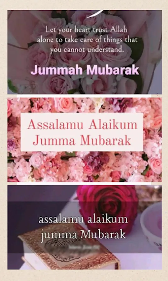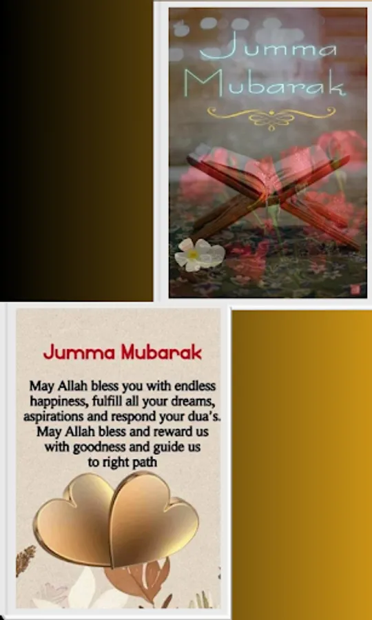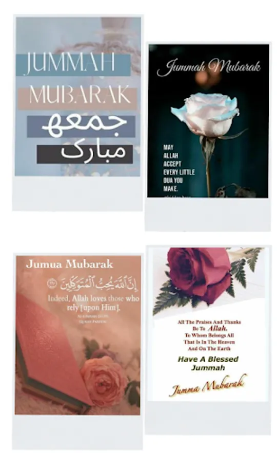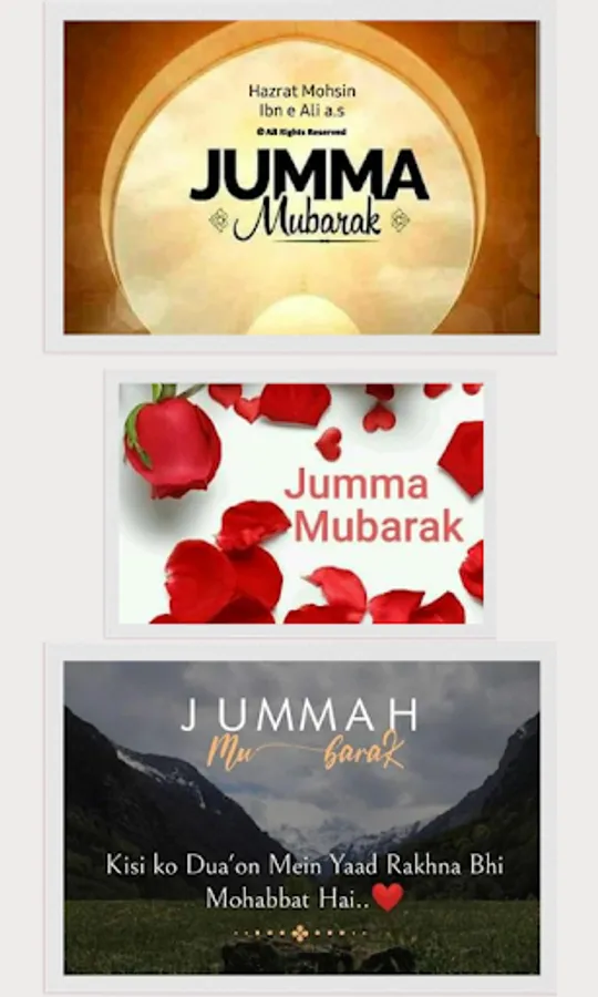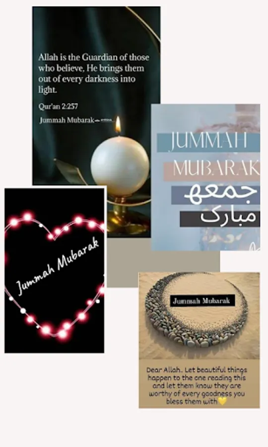 family through social media platforms or messaging apps. This feature encourages users to spread blessings and positivity within their social circles. Include a collection of pre-designed Jumma Mubarak greeting cards that users can share with their loved ones. These cards can be personalized with messages and wishes for a blessed Friday.