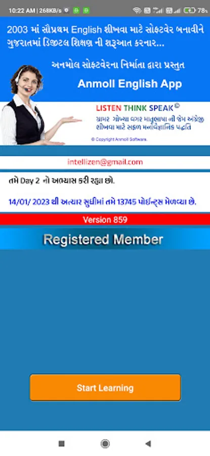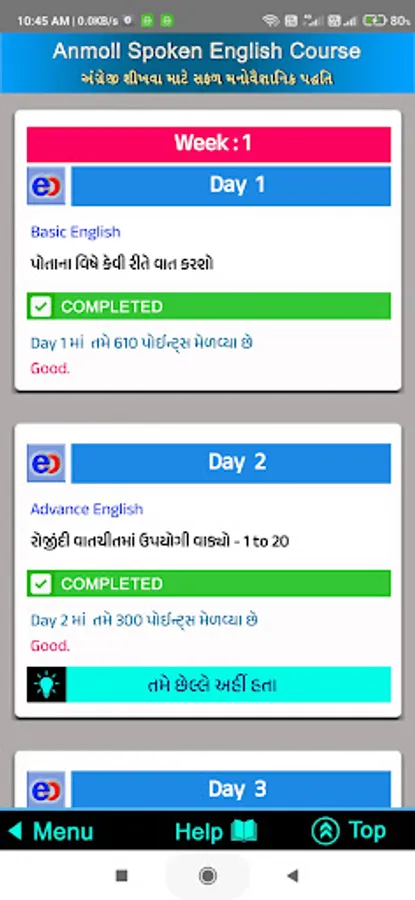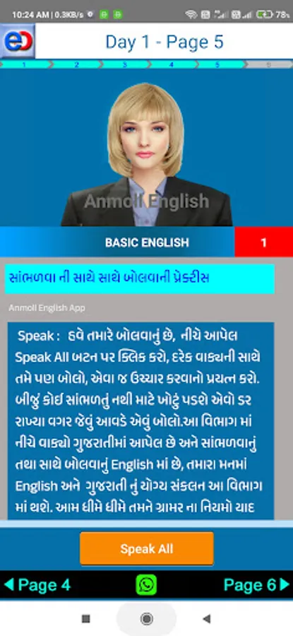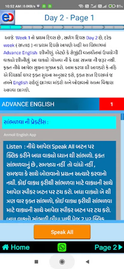 Anmoll English app is actually an Android version of popular Gujarati software for learning English - Anmoll English learning software. Anmoll stands for All new method of language learning. Anmoll software has been most popular among Gujarati speaking people worldwide since 2003 for learning to speak English easily at home in Gujarati medium. Now this app is available in Hindi, for Hindi users this spoken English in Hindi app will be very useful to learn to speak English with English speaking course in Hindi. This is the most popular app extension of Anmoll English software. Our customers and well wishers had long standing demand to make it available on mobile devices to learn English in Gujarati and Hindi on the move. Now easily learn to speak English, spoken English app in Gujarati and Hindi is here to teach you English in Gujarati as well as in Hindi. Download free English app in Gujarati Hindi and start learning English. Free download English learning app in Gujarati and Hindi to learn English in Hindi or Gujarati for free.