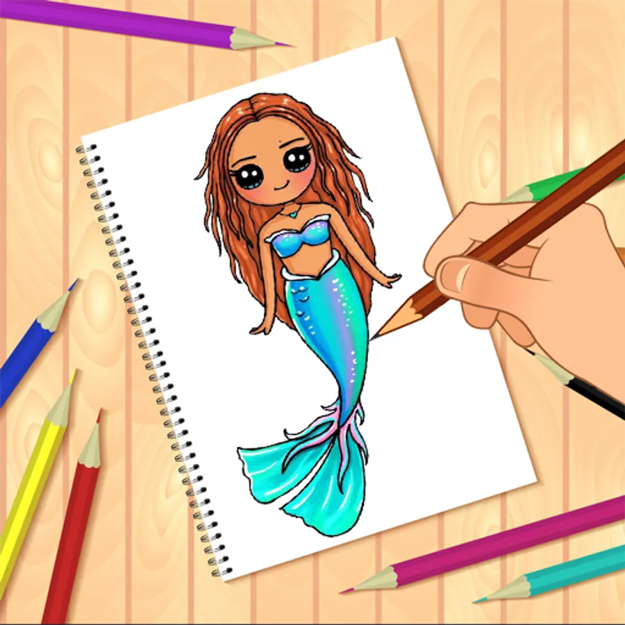 How to draw cute mermaid is a simple app, that helps you learn how to draw mermaid character easily through an excellent step by step guide and detailed tutorial. easy drawing ideas with our app how to draw, you have the chance to learn how to draw cute drawings and easy drawings with cute things to draw step by step.