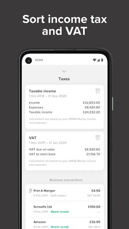 • Tax filing to HMRC – submit your financial data directly from your ANNA app to HMRC