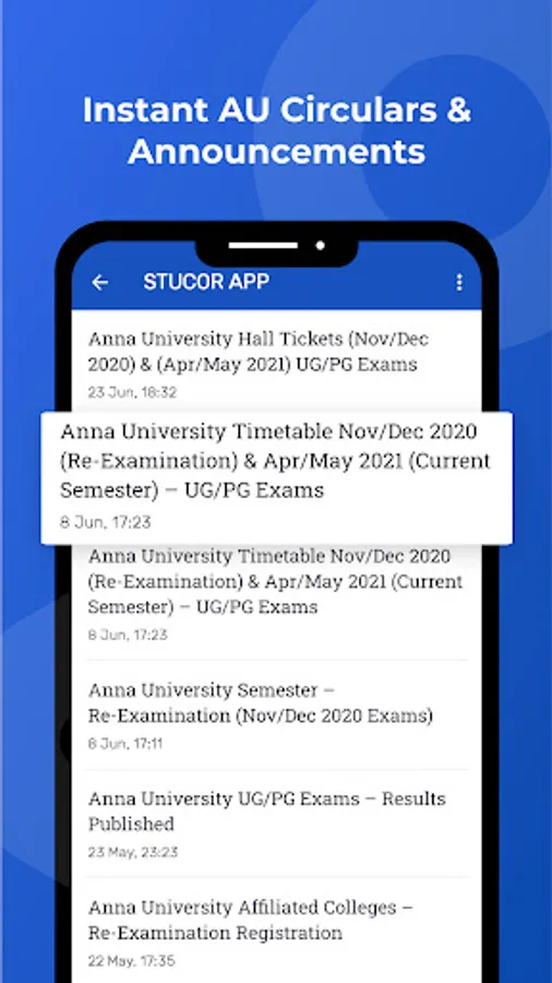 STUCOR is the App which has been designed specially for the students to avoid rumors and to get instant notifications on all announcements & circulars.