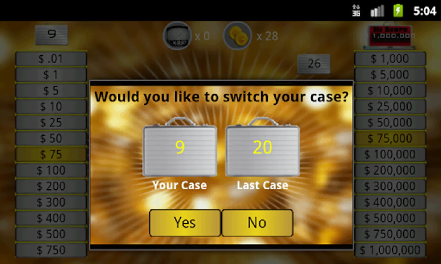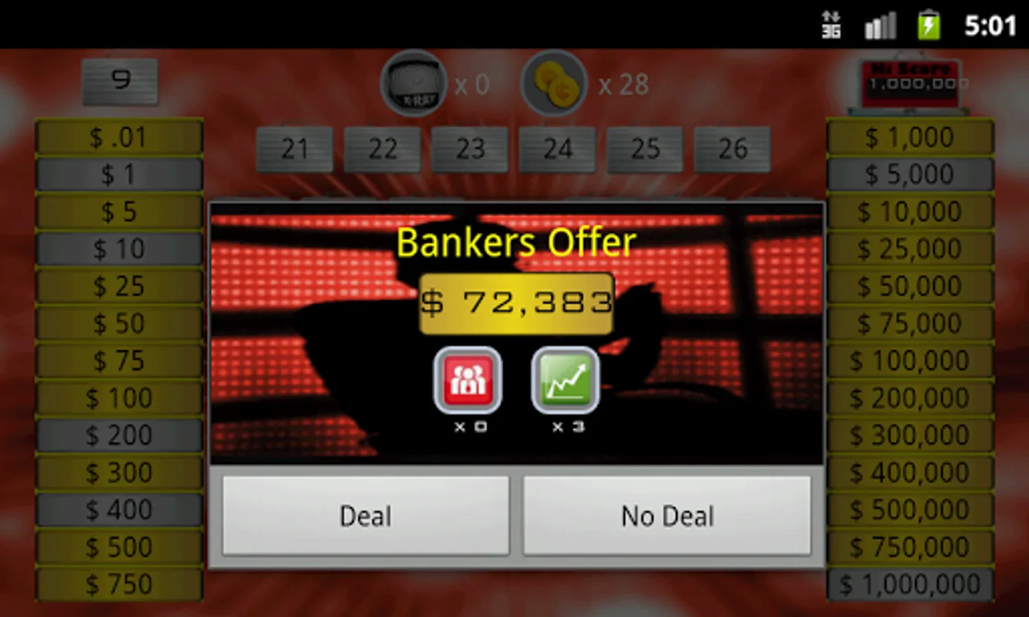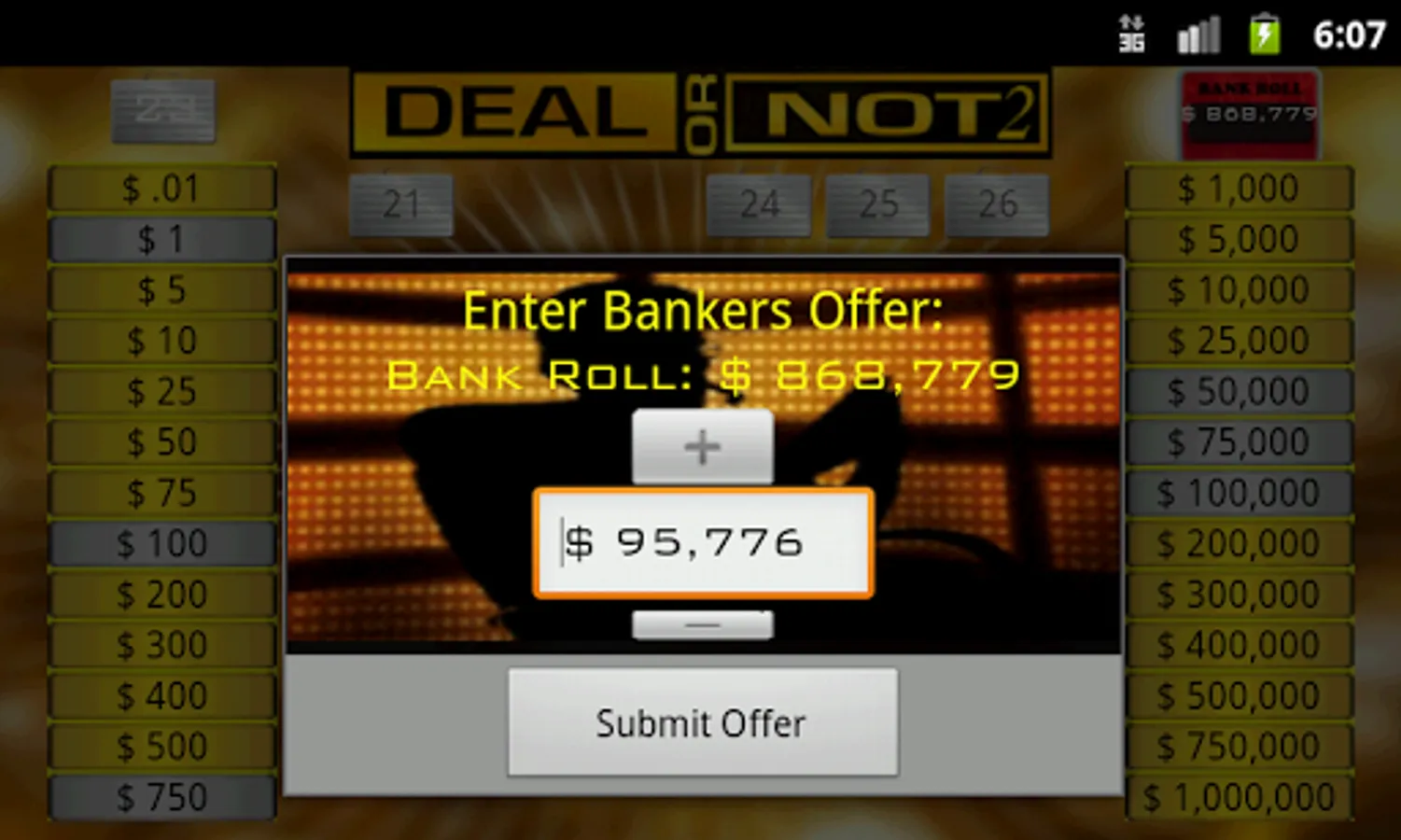 Try and beat the banker by taking deals or simply not and holding out to reveal your briefcase. Will you take the deal?
