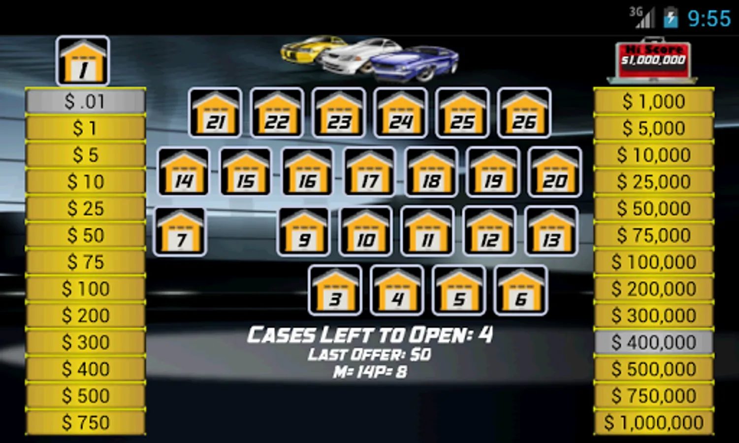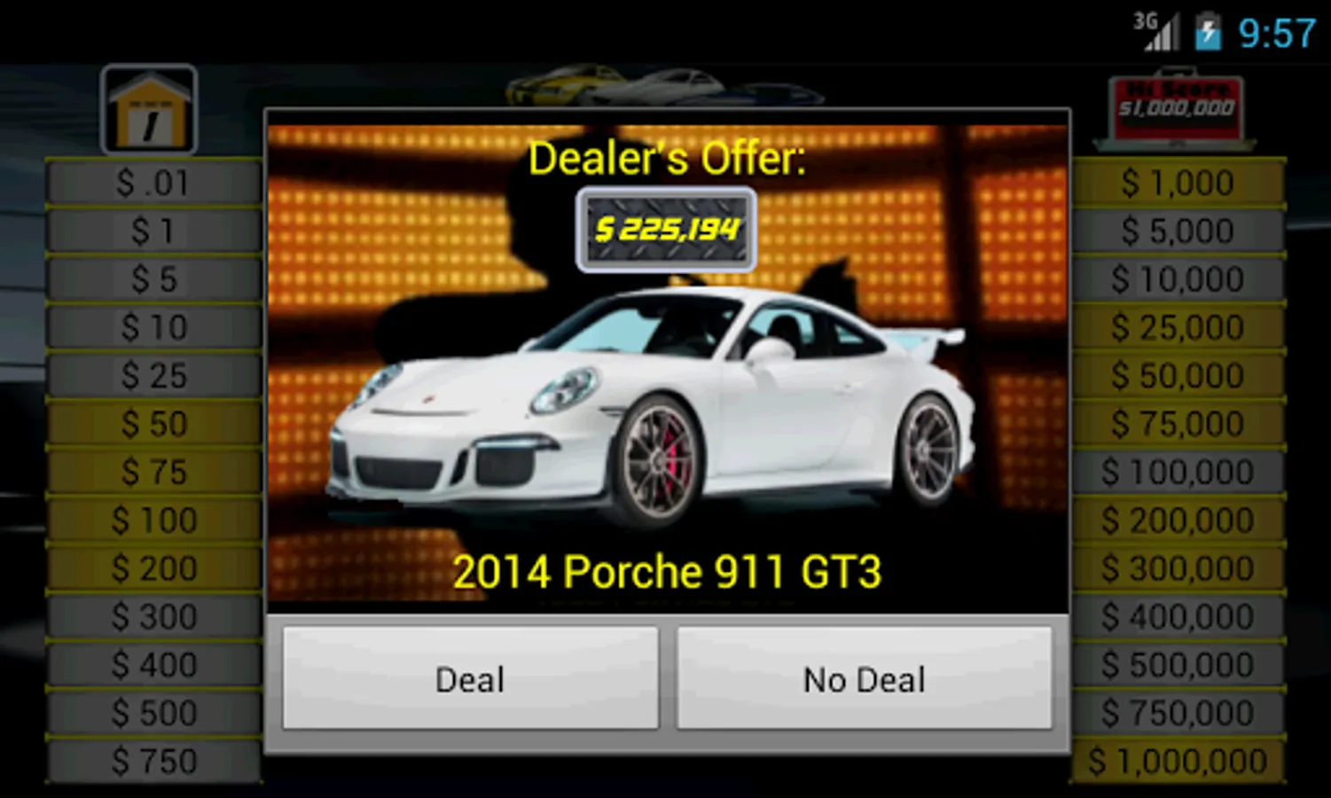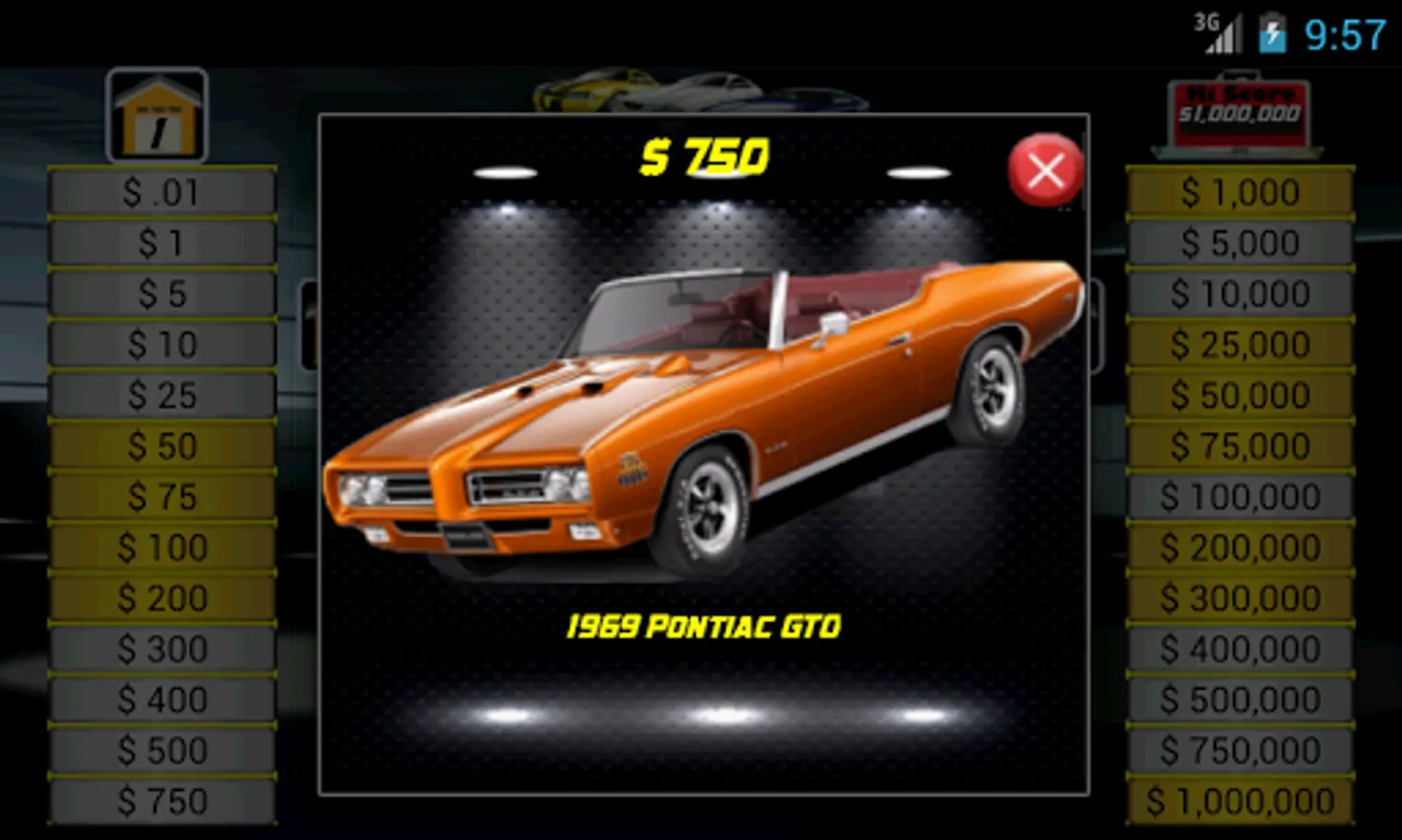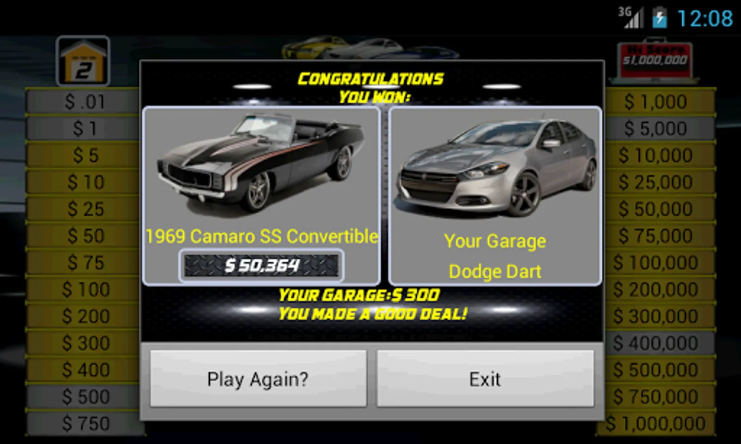 Pick a garage, and try and win as much money as possible from the Dealer!