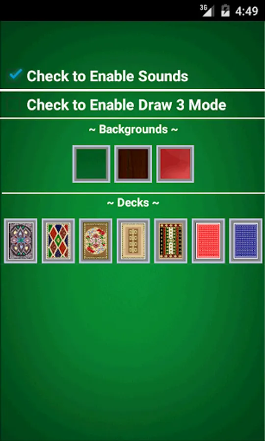 This solitaire app has Solitaire 1 card draw and Klondike Solitaire 3 card draw.