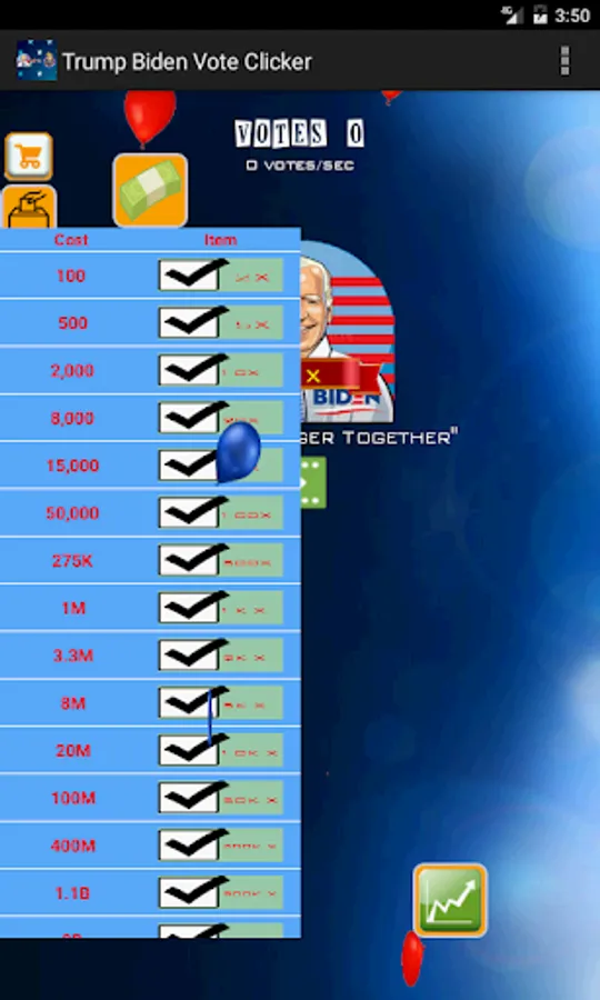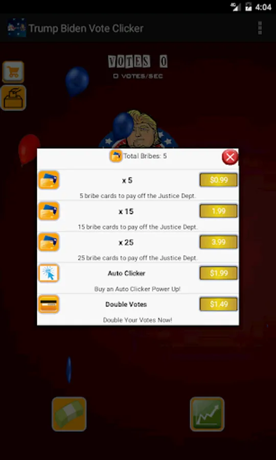 Sick of tapping? Buy the Auto-Vote Clicker power up and get your votes racked up "bigly"!