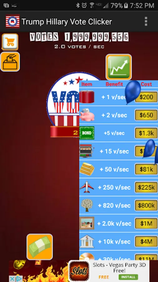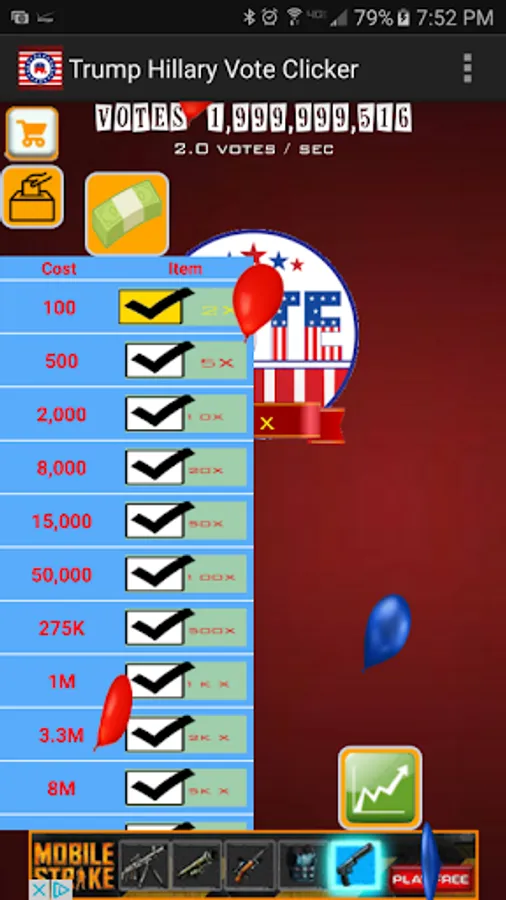 Sick of tapping? Buy the Auto-Vote Clicker power up and get your votes racked up "bigly"!