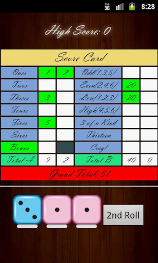 Crag is similar to the classic dice game of Yahtzee or Yacht but faster, played with three dice, and with differing scoring categories.
