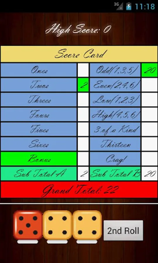 Crag Deluxe is similar to the classic game of Yacht but faster, played with three dice, and with differing scoring categories. (Ad free version)