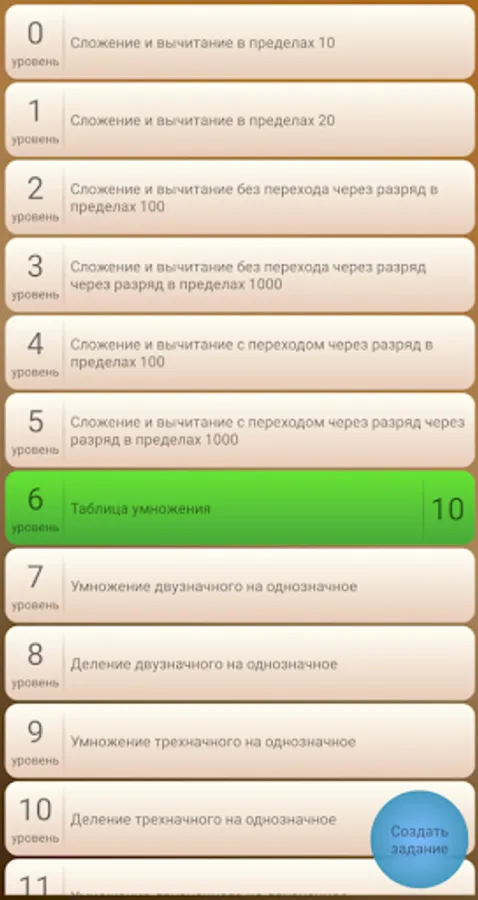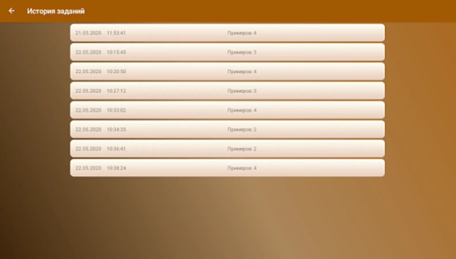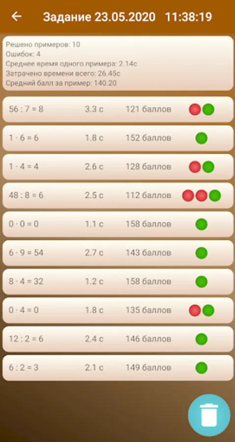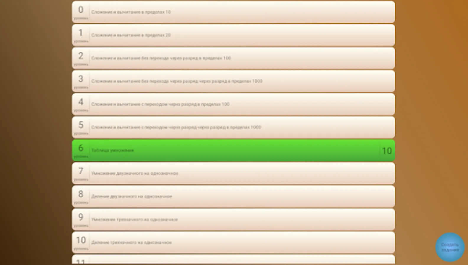 A parent or teacher can create a task by determining the number of examples, their type and complexity, the child performs it. A detailed result with the display of each example, response time, number of attempts is stored in the history. There is also a high score table for monitoring progress.