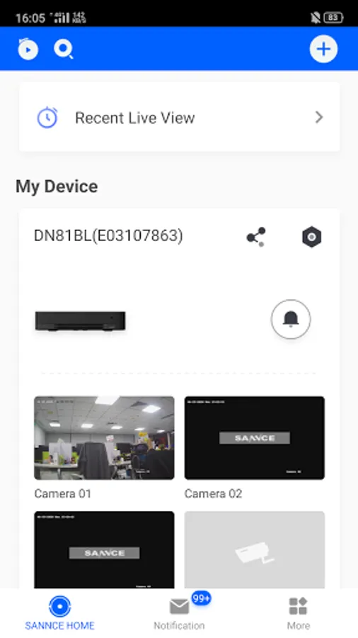The Sannce Home app is designed to work with Sannce DVRs . Live view your cameras and video recorded in the DVR remotely. Only create an account and add DVR to the APP account, then you can enjoy the real-time video from cameras on a global scale. It also allows you to play back video in DVR. When motion detection alarm of your device triggered, you can get an instant message notification from Sannce Home app.