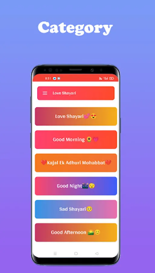 We have added a many types of hindi shayari category like Love, Romantic, Sad, Funny, Dard, Hurt and many more...All love hindi shayari is best collection of love status, dosti shayari, heart breaking status.
