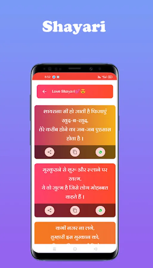 हिंदी शायरी All Love Shayari peoples can understand easily in hindi. Latest shayari are available in this app but some shayari are works online and some shayari are works offline. we are adding latest shayari every day.