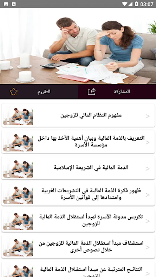 This application includes a detail of the provisions that regulate the financial relationship between spouses in Islamic jurisprudence and Moroccan law, as it deals with the system of managing the library funds during the marital period and the agreement between the spouses in this context, in addition to the provisions of the company between spouses.