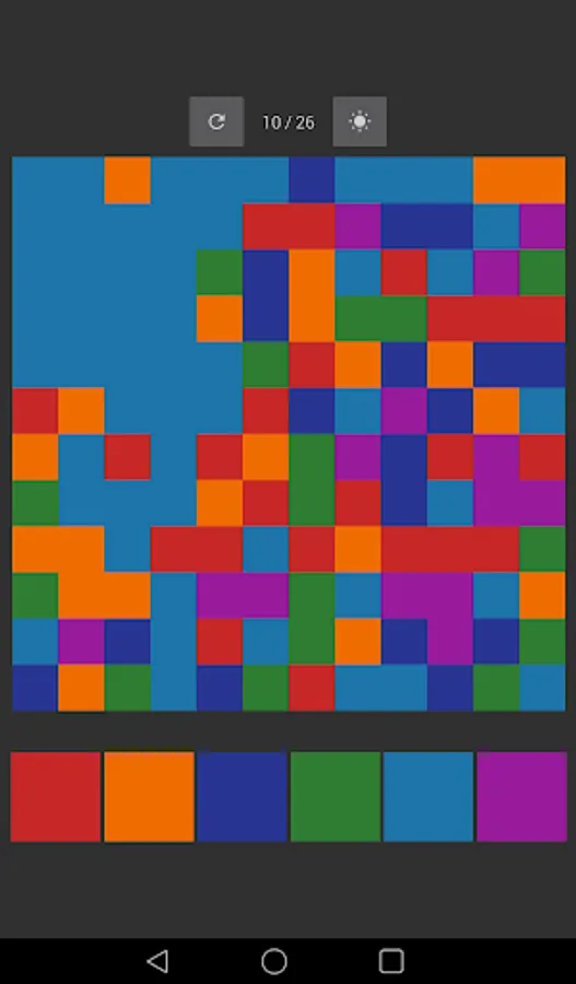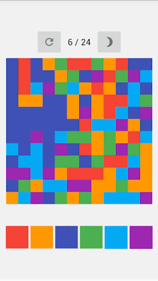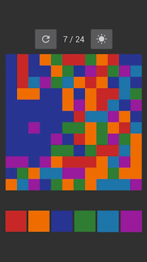 Flood-It is a puzzle game where the goal is to fill the board with one color using the minimum number of moves.
