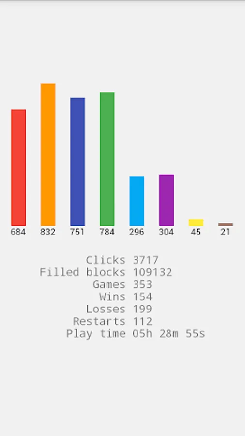 - Statistics. Find out how much time did you spend the game, how many buttons to press and how many cells filled.