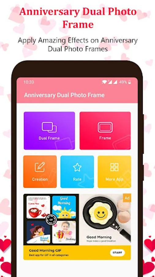 Use this photo frame app and look more beautiful and stunning with your love and make your day memorable, it's powerful photo editing app.