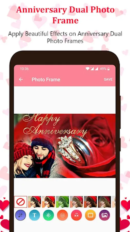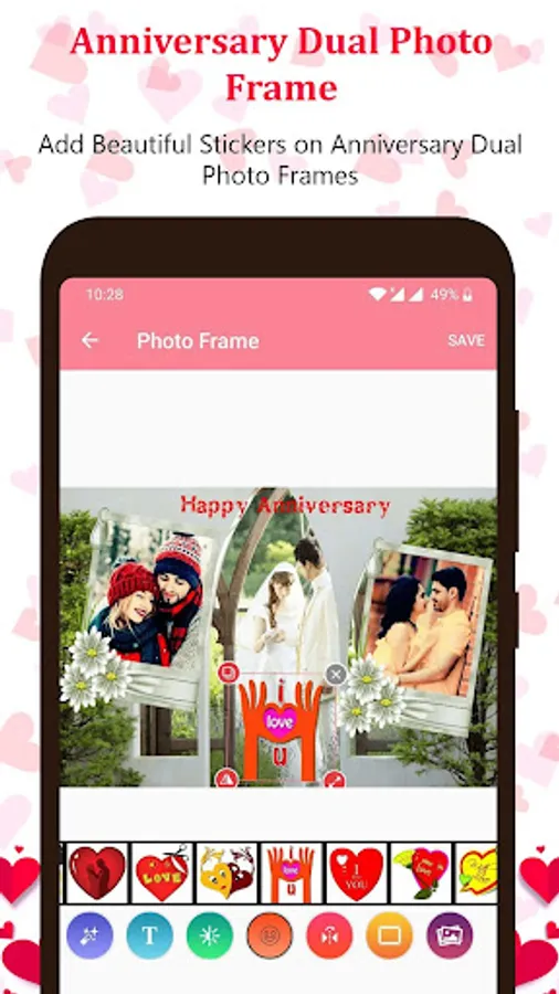 ► Save and share your anniversary photo frames with your friends or family members via social media.