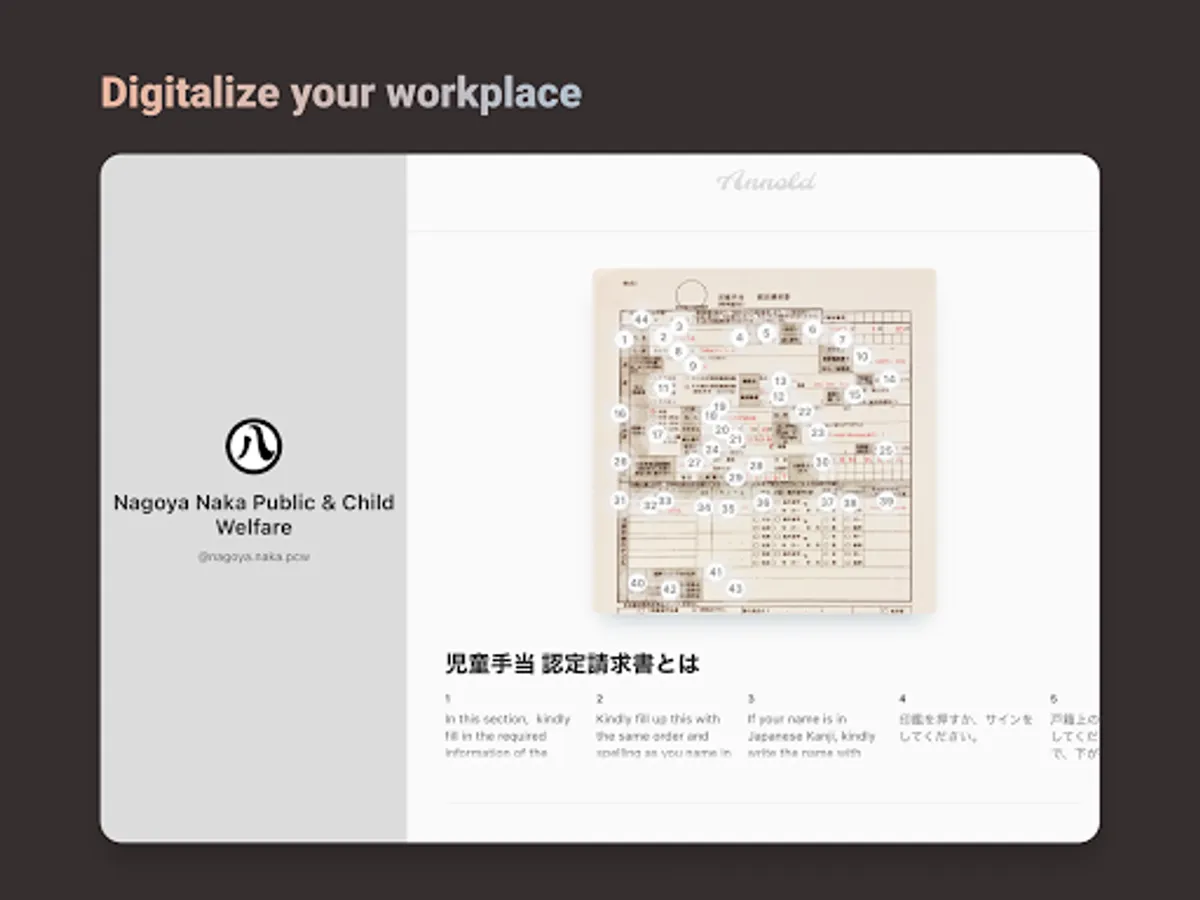 Annotation commentary app that is used at the Naka Ward Office in Nagoya City.