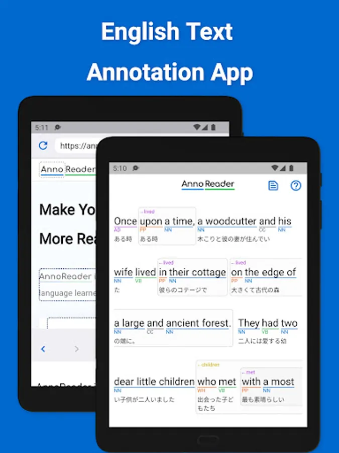 AnnoReader is a reading app for English language learners or readers of other languages.