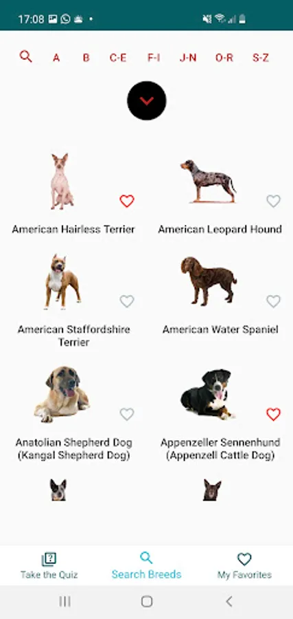 2. Use the search function to browse breeds by alphabetical order, typing keyworks or filtering them according to your criteria.