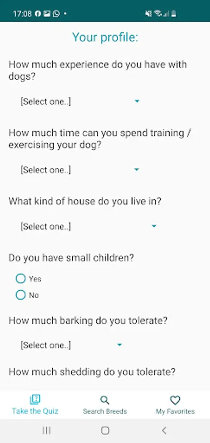 1. Fill the quiz and discover which dog breeds are the best match for you.
