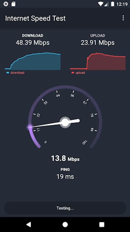 click on begin test, after that Internet Speed Test will began after finishing test you Download Speed Graph and Upload Speed Graph