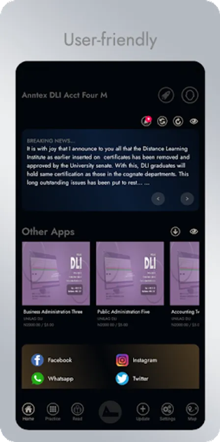 This app was design to help Distance Learning Institute (UNILAG) students practice for their upcoming examination. It contains both theory and objective past questions and answers with explanations. It also contains modules and recommended books of the selected department and level. It also inform students on important information as regards their study. Happy Learning.