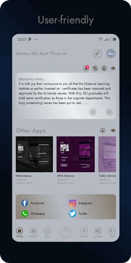 This app was design to help Distance Learning Institute (UNILAG) students practice for their upcoming examination. It contains both theory and objective past questions and answers with explanations. It also contains modules and recommended books of the selected department and level. It also inform students on important information as regards their study. Happy Learning.