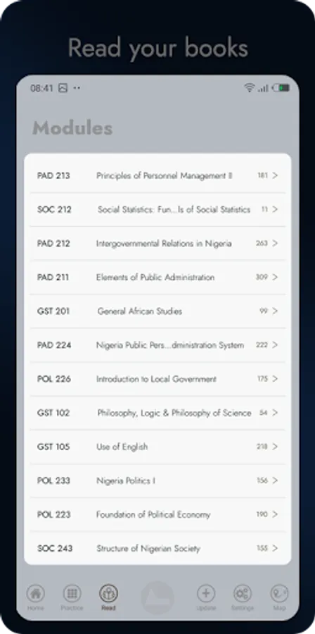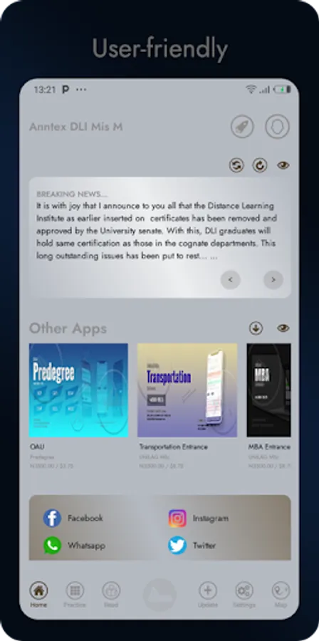 This app was design to help Distance Learning Institute (UNILAG) students practice for their upcoming examination. It contains both theory and objective past questions and answers with explanations. It also contains (available) modules and recommended books of the added courses. It also inform students on important information as regards their study. Happy Learning.