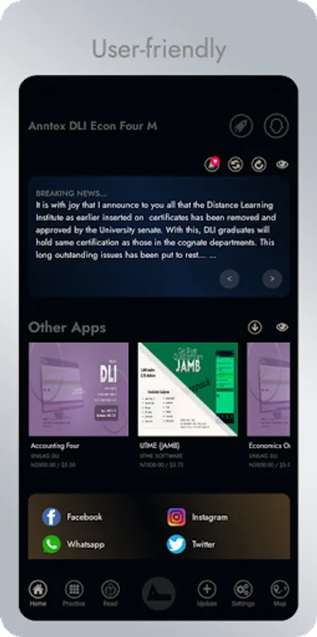 This app was design to help Distance Learning Institute (UNILAG) students practice for their upcoming examination. It contains both theory and objective past questions and answers with explanations. It also contains modules and recommended books of the selected department and level. It also inform students on important information as regards their study. Happy Learning.
