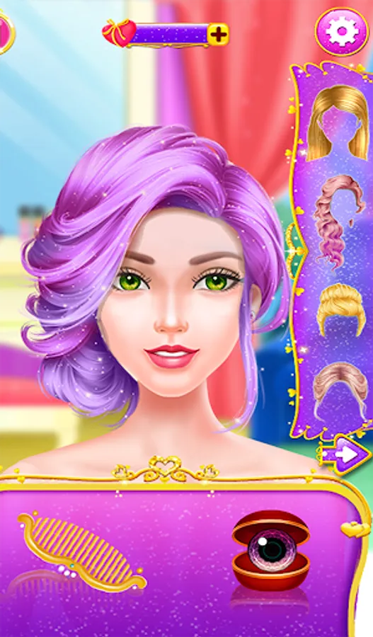 Now we can let her hair back down again and work our magic – don’t you think pink hair is pretty? And what about matching eyes? No one’s going to upstage our bride on her wedding day with eyes like these!