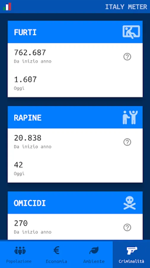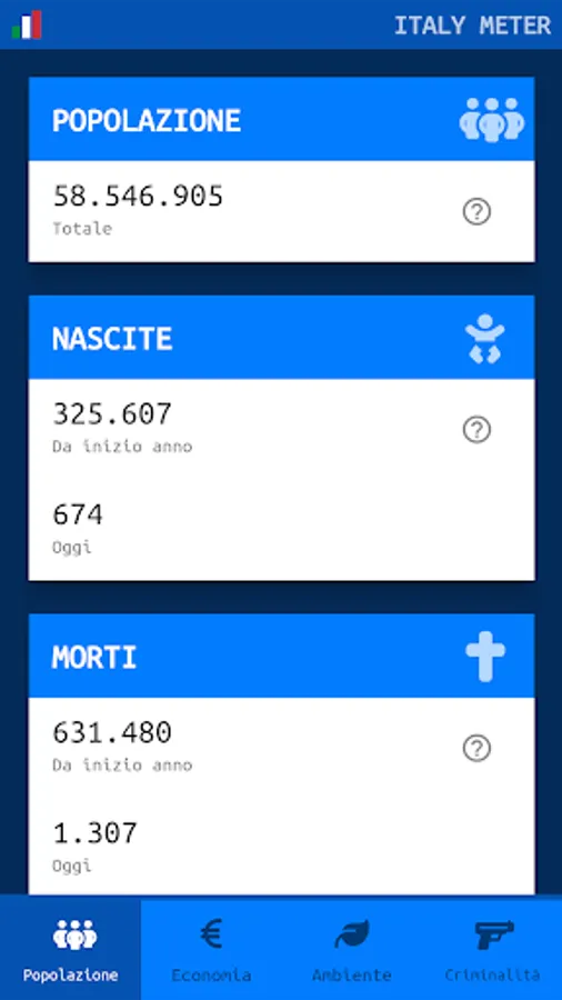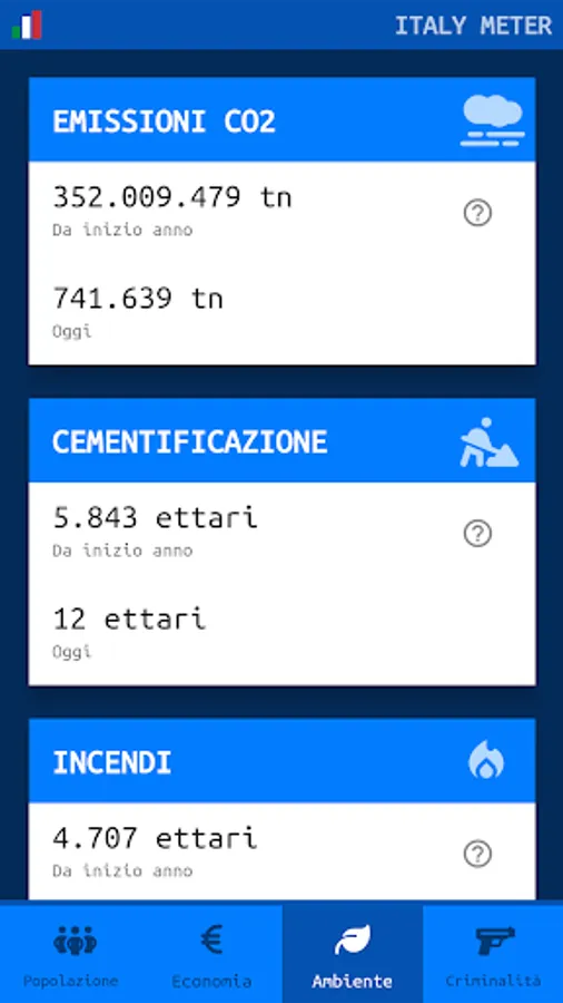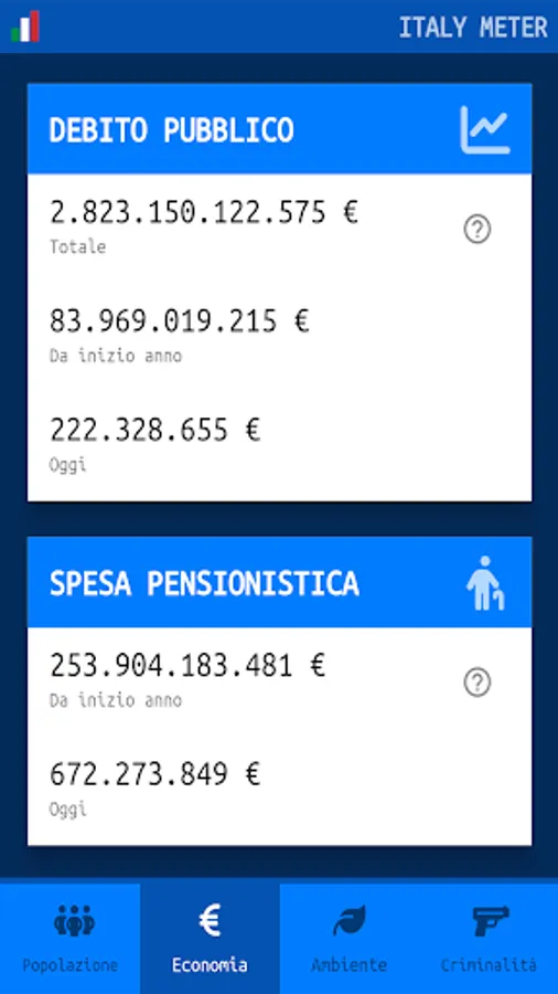 Italy Meter does not represent in any way any government body or one of the entities used as a source.