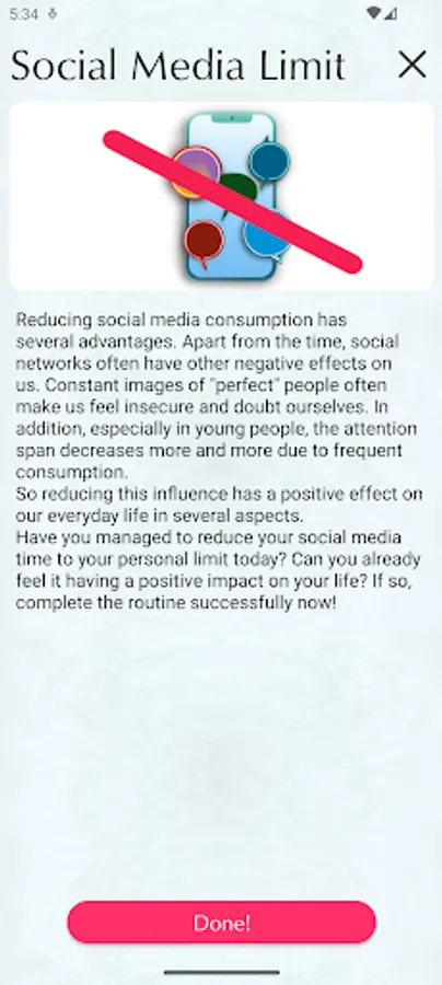 QUALIME helps you develop habits by motivating you to stay on track. It gives you clear information about the routines and guides you through the execution with short texts and graphics. Thus, QUALIME offers you everything you need so that you can fully concentrate on the essentials!