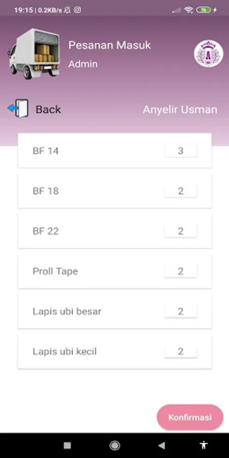 The product distribution application is an application for all Anyelir Cake and Bakery branch stores in Purwakarta to order products from the product provider (Admin).