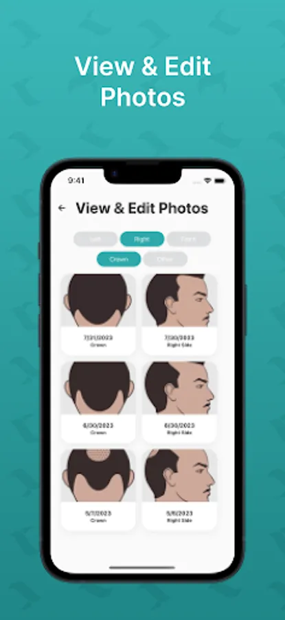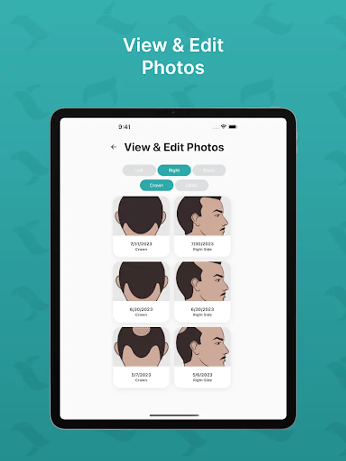 Upload Photos: Easily upload photos of your hair tagged with various angles - left, right, crown, and more.