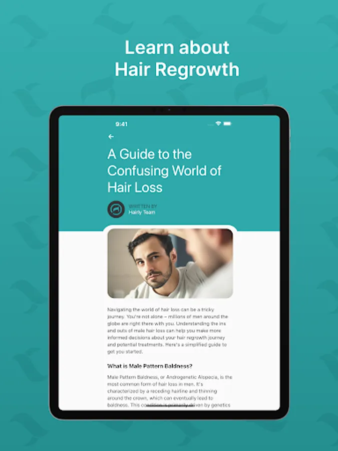 Well, you're in luck! Hairly is the ultimate hair loss solution for thinning and balding hair. We understand how to regrow hair and have designed a full-suite solution to help you tackle male and female pattern baldness - all 100% free with no ads.