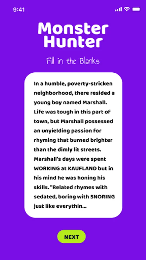 Bereit für ein wildes Sprachabenteuer? Entdecke die aufregende Welt der "MadLibs"! Fülle Lücken, spiele mit Worten und erlebe verrückte Geschichten. Lass deiner Fantasie freien Lauf und vervollständige die lustigsten Sätze. Ob als Monsterjäger, in Istanbul oder bei einer TikTok-Romanze, unsere englische Mad Libs App bringt Langeweile zum Schweigen. Lachanfälle und kreative Wortkreationen erwarten dich. Erwecke deine eigenen einzigartigen Geschichten zum Leben. Spaß am Sprachenlernen und Lachen mit Freunden garantiert! Hol dir jetzt die Mad Libs App und lass die Worte tanzen!