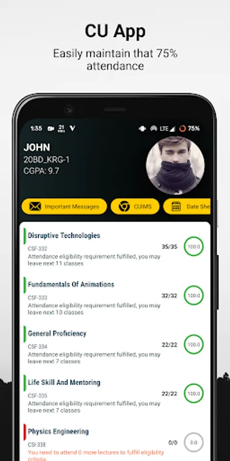 This app is for the students *(only) of chandigarh university to track and manage attendance, time table and marks.