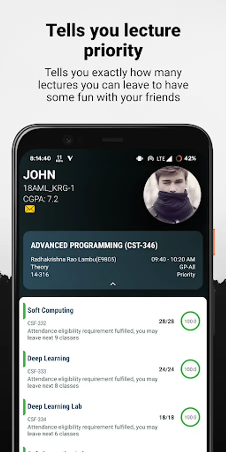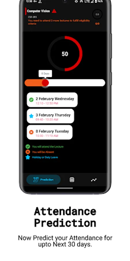 You can predict your attendance for upto next 30 days within this app.