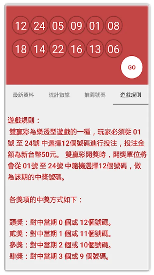 Lotto - Double Games is an application developed for double games, with built-in lottery data, recommended numbers, random selection, statistical analysis, game descriptions and many other functions, for the reference of lottery fans.