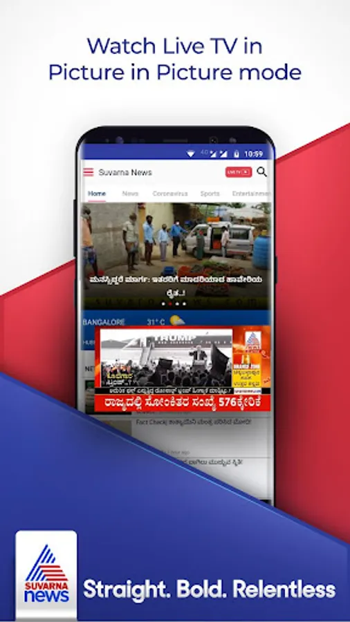 Live TV: Now watch the live stream of Suvarna News TV on your Chromecast (TVs) enabled devices as well as in Picture in Picture Mode.