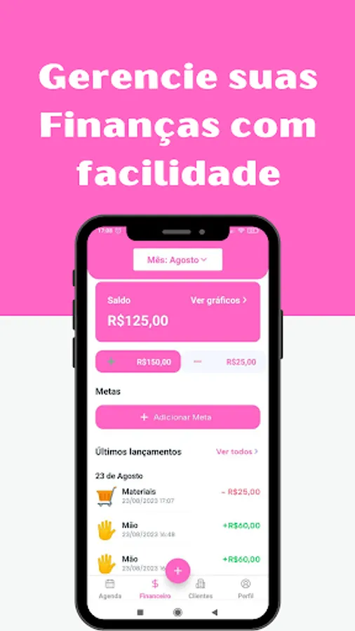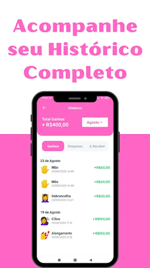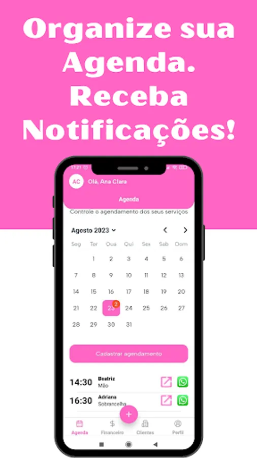 The "Agenda Manicure" application is a complete and indispensable tool for professionals in the field who want to optimize their management. With an intuitive design and comprehensive functionality, the application aims to simplify and improve the daily organization and financial growth of professionals.