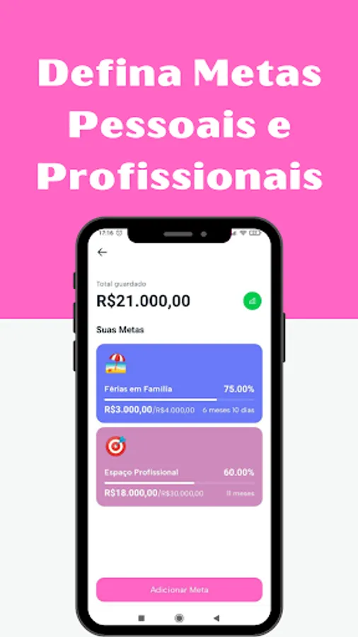 To stimulate personal and professional growth, the application offers the possibility to create "Personal and Professional Goals". You can set goals for your family and your business. The app tracks progress towards these goals, encouraging your financial planning.