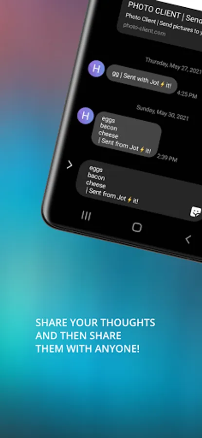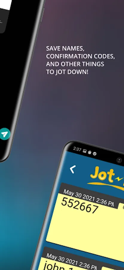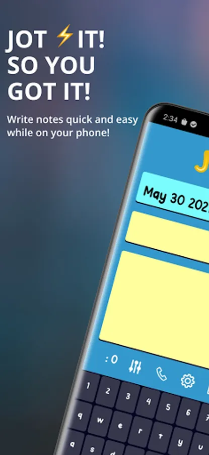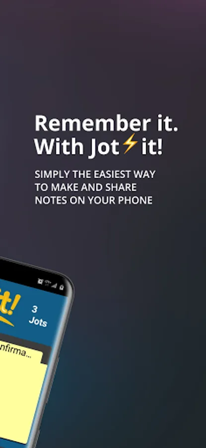 Jot⚡it! So you got it! World's only best note writing tool to Jotit down dates, shopping lists, things to do, emails, phone numbers, and other things that you may want to remember. Write important information quickly and easily while on your phone! The days of having piles of notes on your desk are no more. Don't lose a thought, save it with a Jot