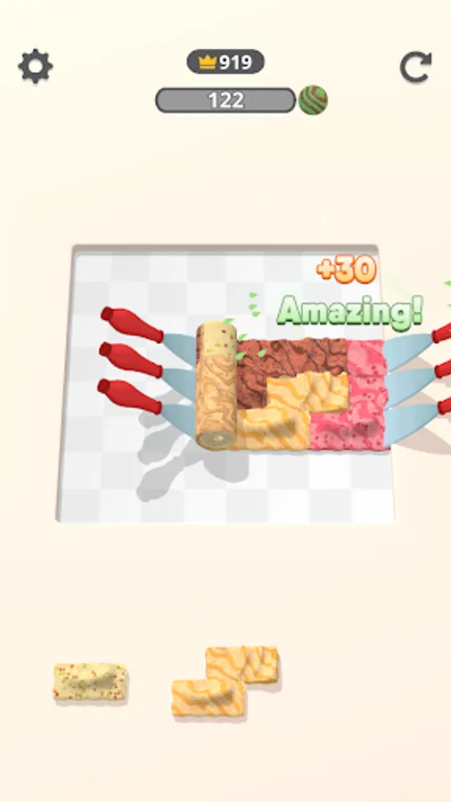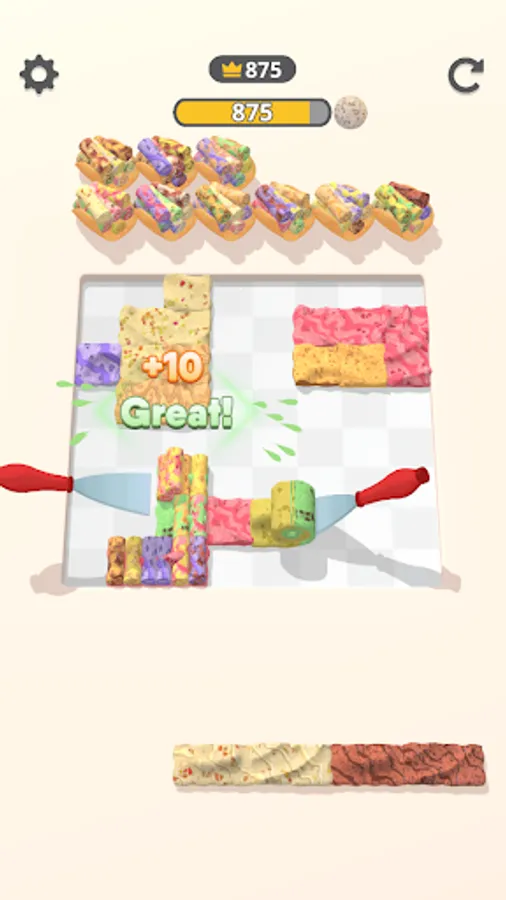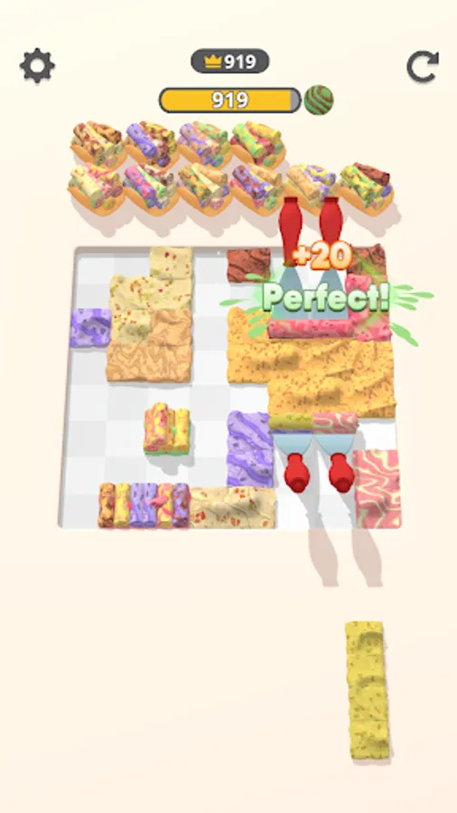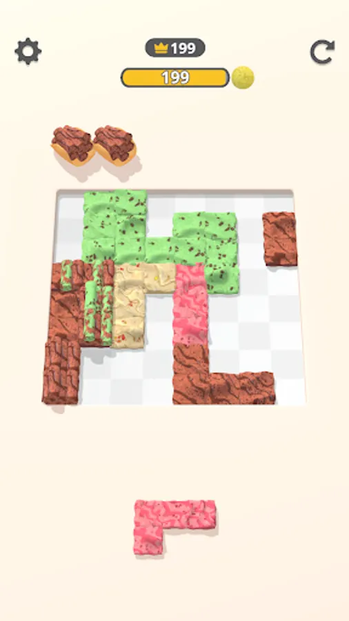 Place ice cream blocks on the table. Complete a row or column to start rolling the ice cream and create ice cream rolls! Collect enough rolls to make rolled ice cream tacos!