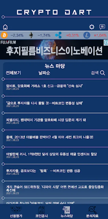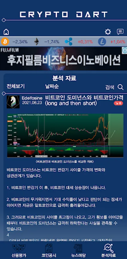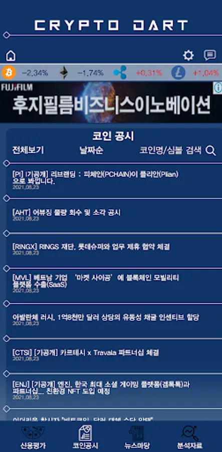 Cryptodart, a fair and transparent virtual asset evaluation system, is an information window where you can view information, disclosures, and analysis of various cryptocurrencies.