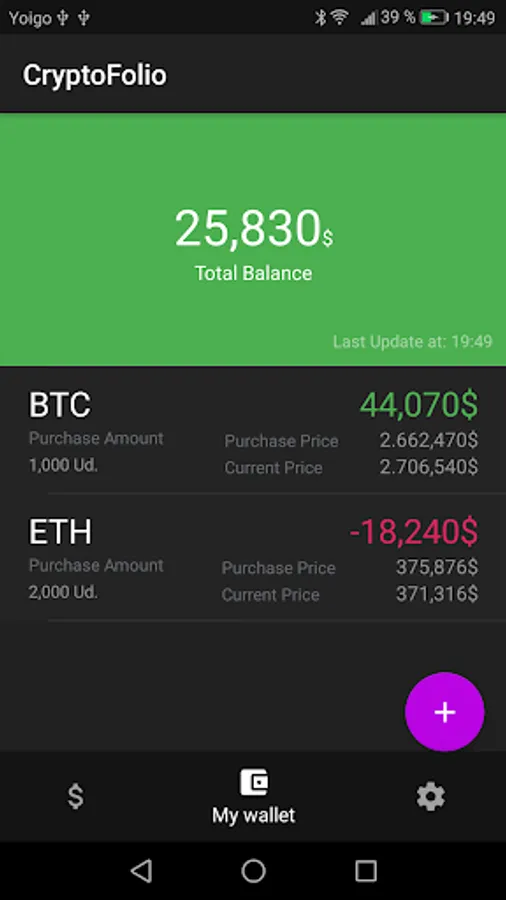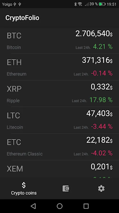 In the section of your wallet you can create your investment portfolio including the currencies you have bought and the price at which you bought them. From that moment you will have an updated vision of how your investment is going, if you get benefits or if on the contrary it is time to sell some.